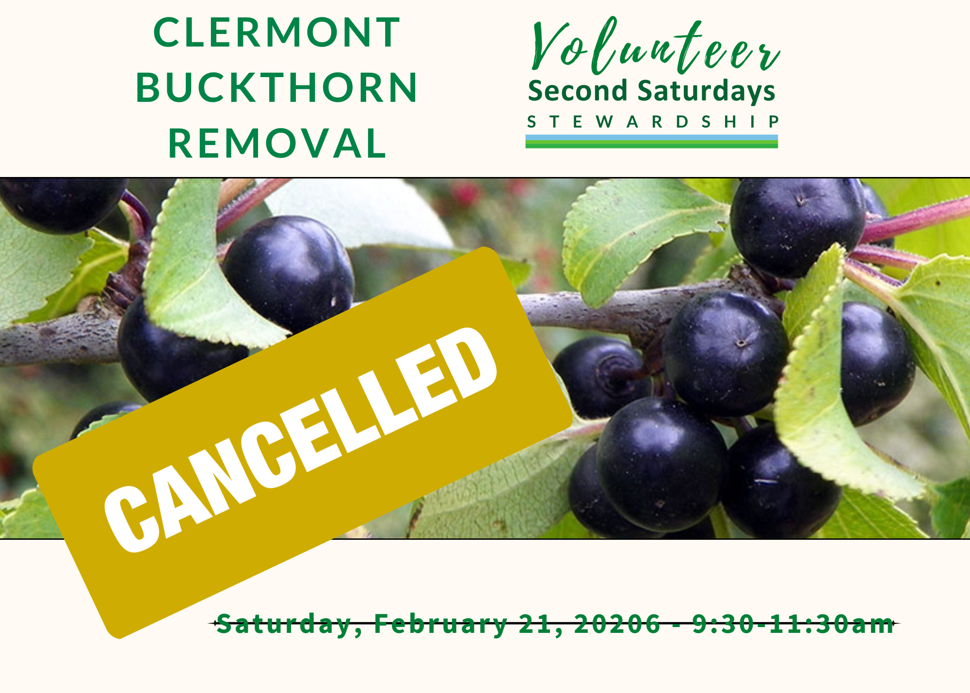 During this event, volunteers will have the opportunity to learn about forest regeneration practices occurring on the Clermont property (read more about it here) and lend a hand to help remove invasive buckthorn, a highly invasive shrub, that is threatening our forest.